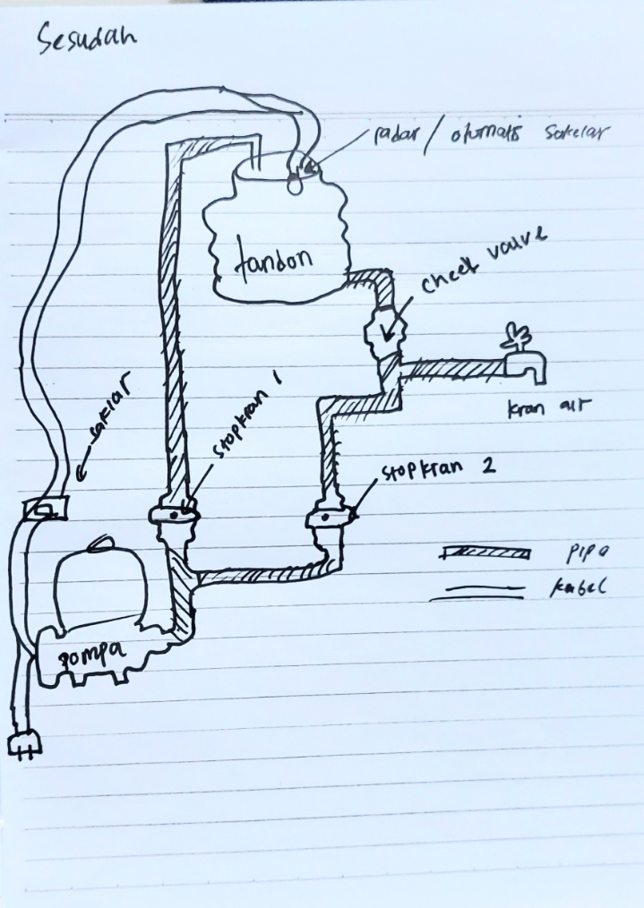 Perlu diingat bahwa pompa yang terinstall sudah menggunakan tabung otomatis dimana ketika valve di tutup maka pompa otomatis mati .