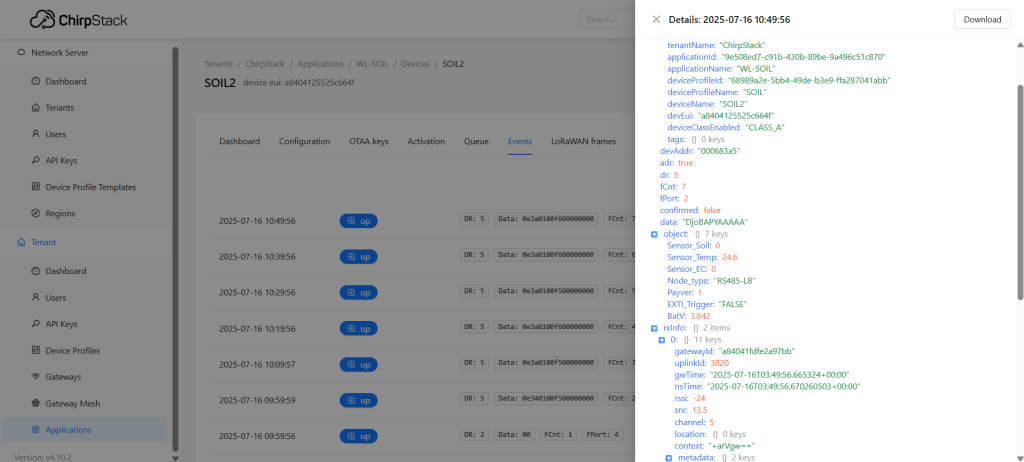 Artinya node sudah berhasil mengirimkan data ke gateway dan diteruskan ke ChirpStack dengan sukses.