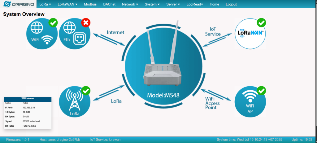 Dragino MS48-LR adalah gateway LoRaWAN yang mendukung koneksi ke server seperti ChirpStack, baik lokal maupun cloud. Artikel ini membahas langkah-langkah setting Dragino MS48-LR agar terhubung ke ChirpStack lokal dan bisa digunakan untuk menerima data dari node LoRa.