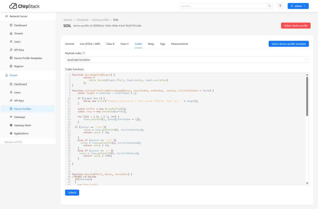 Salin kode decoder sesuai perangkat Anda, lalu paste ke kolom decoder di ChirpStack.