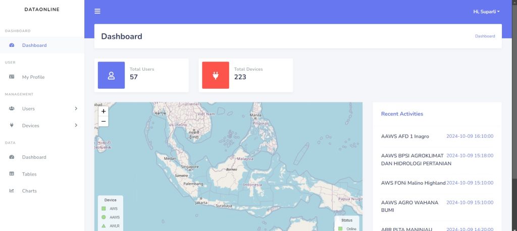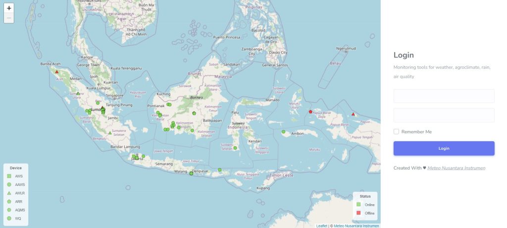 dataonline.co.id adalah Web Platform yang di sediakan oleh Meteonusantara untuk mempermudah pengguna alat Meteorologi seperti Stasiun Cuaca, Pengukur Air Tanah, dsb.